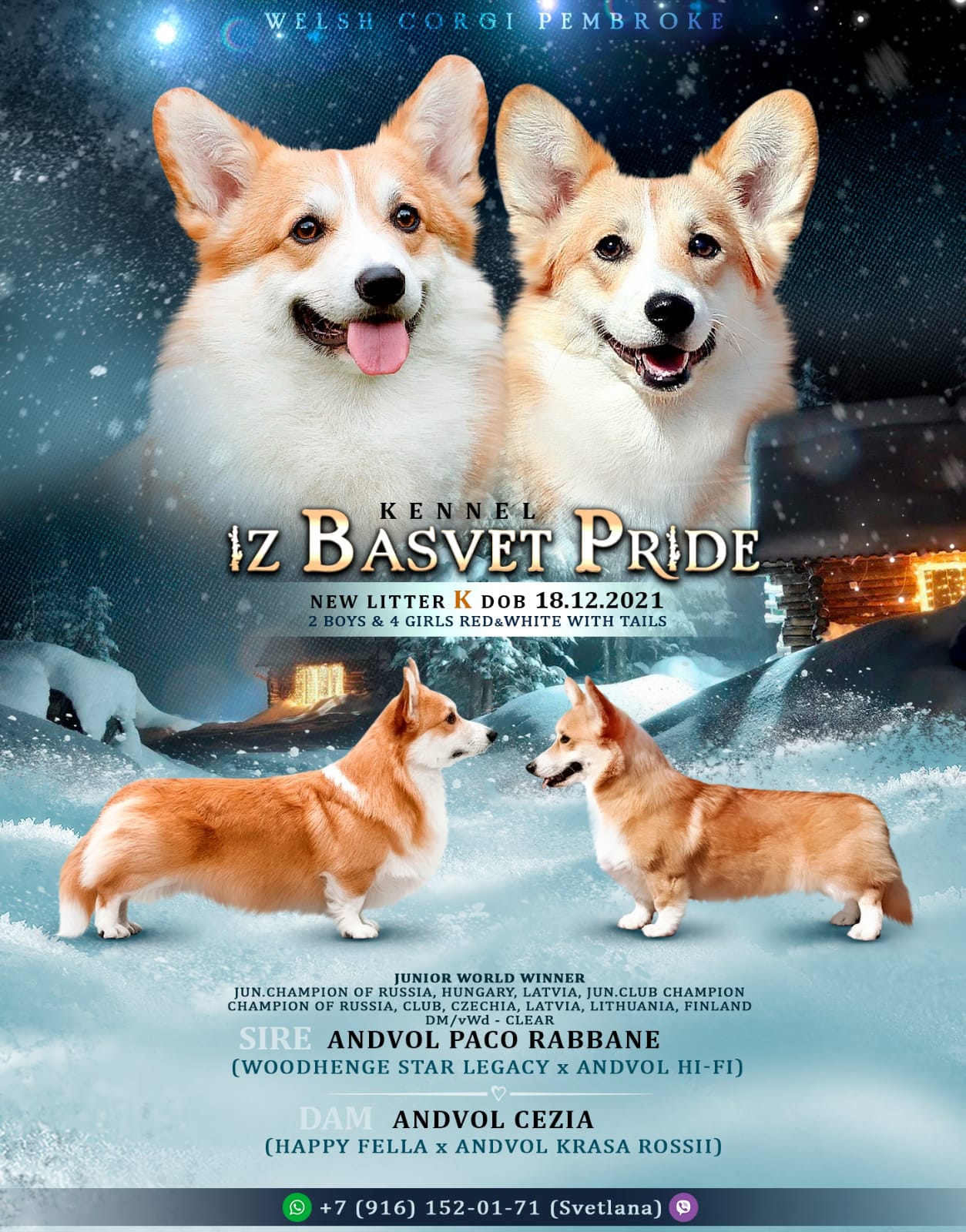 Перейти на страницу заводчикаSir: ANDVOL PACO RABBANE (Woodhenge Star Legacy x Andvol Hi-Fi) : JUNIOR CHAMPION JWW, JCH RU, HU, LV, NBC (National Breed Club) CHAMPION: CH RU, CZ, LT, LV, FI, NBC DM/vWd - Clear